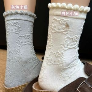 日系可爱小猫花边中筒袜春秋季新款百搭外穿透气配勃肯鞋学生袜