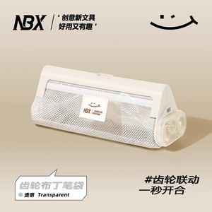 NBX齿轮联动布丁笔袋一秒开合化妆收纳袋初中生解压文具盒小学生