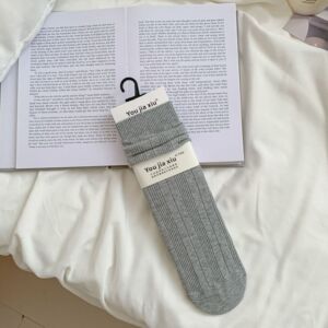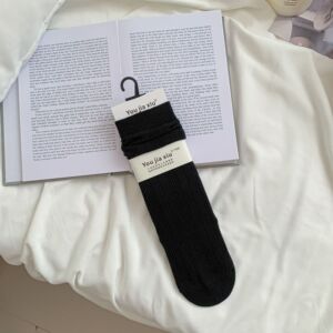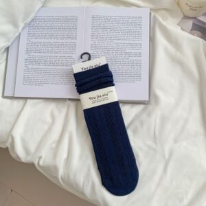 藏青袜子女纯棉中筒袜春秋韩系ins潮细条纯色长袜配德训鞋堆堆袜