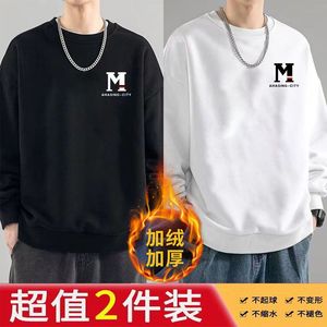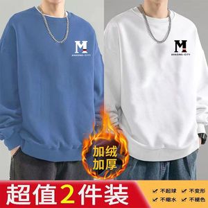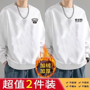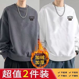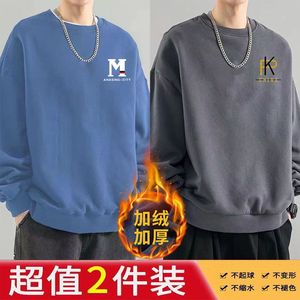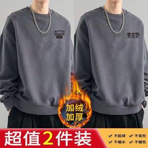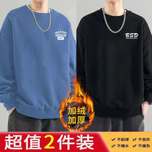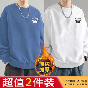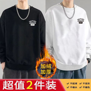 秋冬卫衣男士新款长袖t恤加绒加厚打底衫潮流宽松圆领青年上衣服