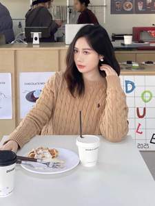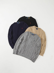 跨境RL拉夫 秋冬复古百搭小马刺绣麻花针织套头圆领纯色毛衣男女
