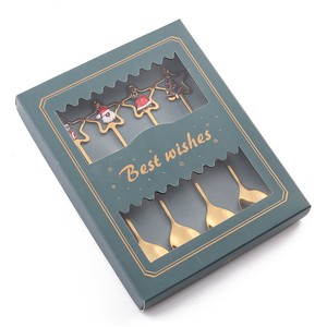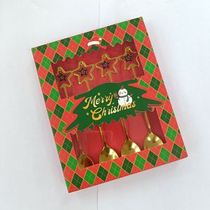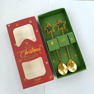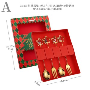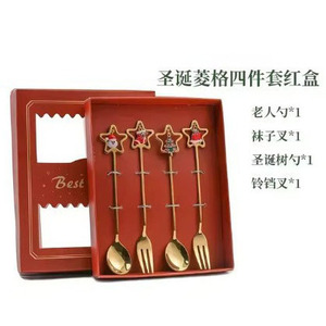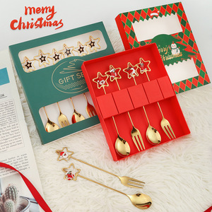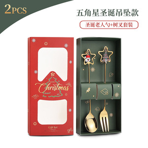 跨境圣诞节勺子304不锈钢搅拌勺星星吊坠勺餐具甜品勺叉礼盒套装