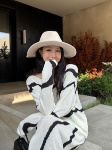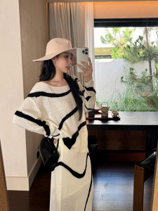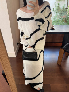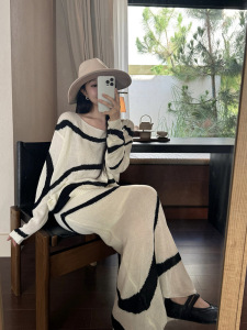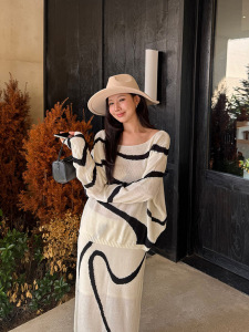套装女装韩系法式针织上衣宽松防晒罩衫秋装设计感线条休闲半身裙