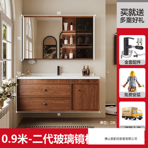 0.9米 胡桃木色/二代玻璃镜柜(含化妆镜) 陶瓷一体盆/包入户+安装