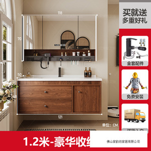 1.2米 胡桃木色/智能半镜柜 陶瓷一体盆/包入户+安装