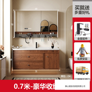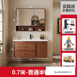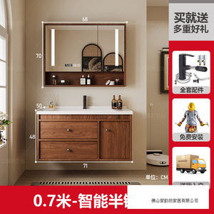 0.7米 胡桃木色/智能半镜柜 陶瓷一体盆/包入户+安装