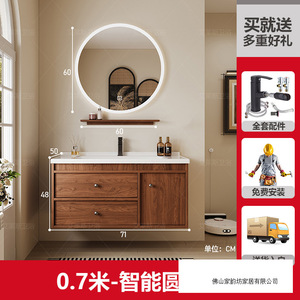 0.7米 胡桃木色/智能圆镜 陶瓷一体盆/包入户+安装