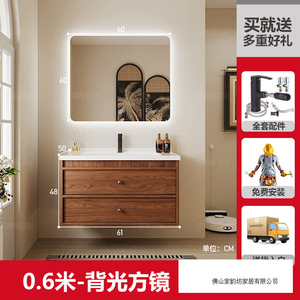 0.6米 胡桃木色/智能方镜 陶瓷一体盆/包入户+安装