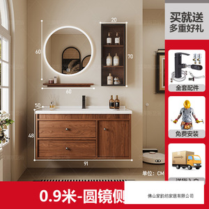 0.9米 胡桃木色/圆镜侧柜 陶瓷一体盆/包入户+安装