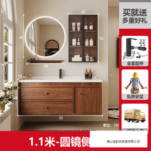 1.1米 胡桃木色/圆镜侧柜 陶瓷一体盆/包入户+安装