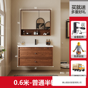 0.6米 胡桃木色/普通半镜柜 陶瓷一体盆/包入户+安装