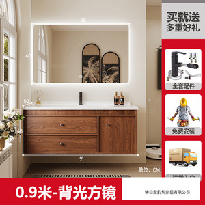 0.9米 胡桃木色/智能方镜 陶瓷一体盆/包入户+安装