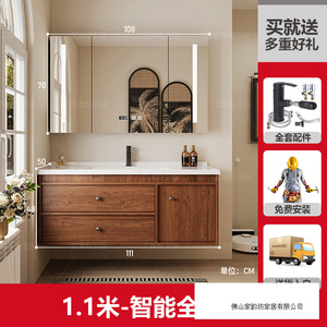 1.1米 胡桃木色/智能半镜柜 陶瓷一体盆/包入户+安装