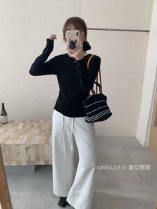 MANUVIVI摩女薇薇叠色圆领打底衫春秋亲肤百搭显瘦长袖上衣t恤女