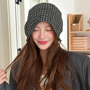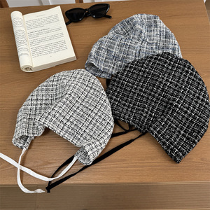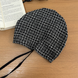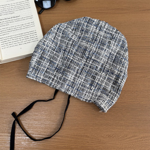早秋新款~韩系慵懒风格纹绑带包头帽女复古薄款透气潮酷套头帽子