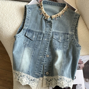 牛仔马甲女2025夏季新款蕾丝拼接小个子复古开衫无袖外套蕾丝马甲