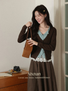 鹿向南「梧桐秋色」设计感小众假两件针织衫女款早秋拼色长袖上衣