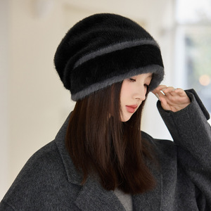 冬季帽子女款保暖护耳一体帽拼色时尚百搭毛线帽加厚针织包头帽子
