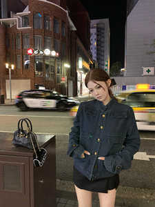 秋季老钱风女装穿搭立领正肩短款女士牛仔外套女2025新款夹克上衣