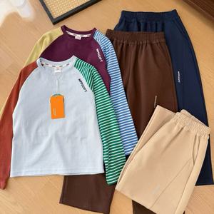 091109 秋季新款 儿童韩版撞色条纹T恤+弯刀裤系列 一件代发