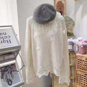 时尚韩系蝴蝶镂空软糯长袖针织毛衣女秋冬大码慵懒风宽松显瘦上衣