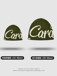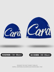 美式街头字母提花针织帽子女款大头围显脸小包头帽秋冬保暖冷帽潮