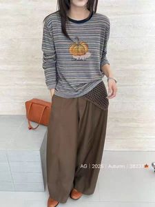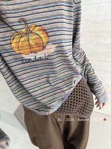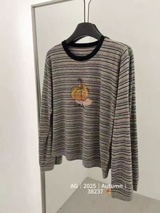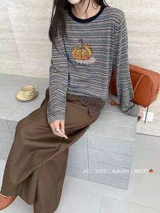濮院14针细羊毛2025秋装南瓜圆领黄条纹上衣长袖宽松毛衣气质女装