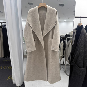 秋冬季新款韩系简约宽松休闲长款翻领双面呢大衣东大门羊毛外套女