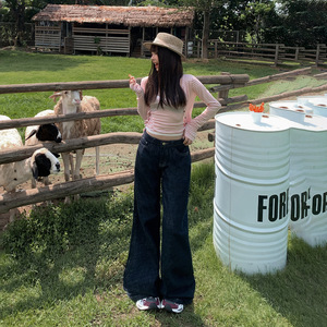 美式微喇牛仔裤女2025年秋冬新款高腰直筒宽松显瘦不贴腿喇叭裤子