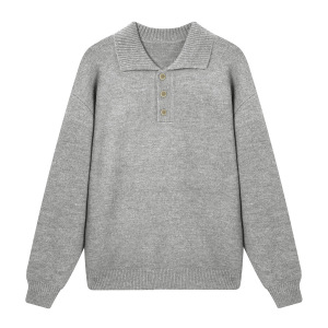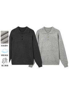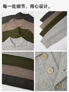秋冬季新款日系复古针织衫老钱风翻领毛衣男宽松百搭POLO领上衣