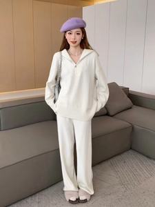 跨境针织套装女秋冬新款宽松大码加厚半拉拉套头毛衣阔腿裤两件套