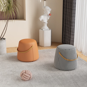 网红手提凳客厅实木千鸟格矮凳家用科技布茶几小板凳门口换鞋凳子