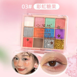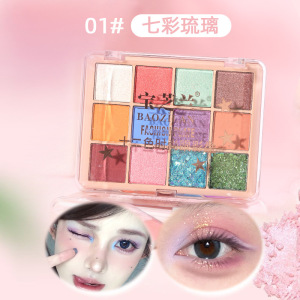 新款亮片舞台妆表演细闪珠光眼影盘彩色蓝色绿色紫色六一节日彩妆