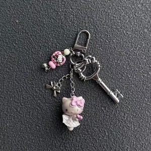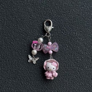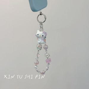 甜美粉色蝴蝶结kitty猫串珠手机链可爱少女心包包挂链钥匙扣链女