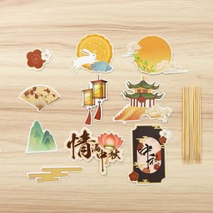 2025中秋节蒸笼竹篮蛋糕装饰花好月圆福满中秋贴纸兔子手提篮装扮
