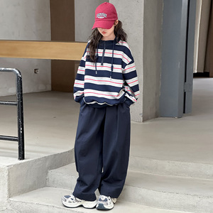 女童秋季套装2025新款女大童洋气条纹爆款卫衣儿童百搭阔腿裤秋装