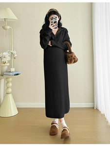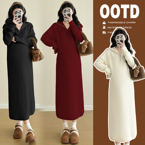 孕妇装秋冬季潮妈时尚新款连衣裙怀孕期法式宽松海军领加厚针织裙
