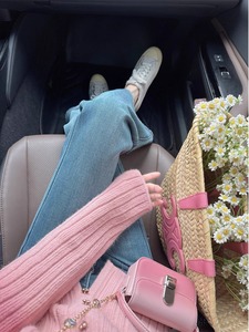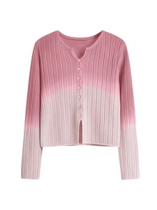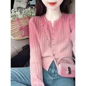 渐变粉色坑条长袖针织衫女多巴胺樱花出片穿搭上衣2025新款开春季
