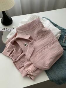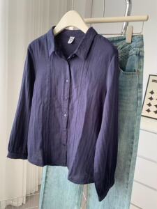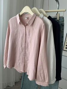复古文艺显白双层棉纱衬衫女!秋季百搭纯色显瘦叠穿休闲长袖衬衣