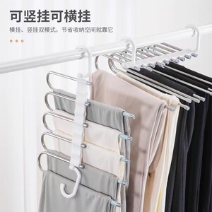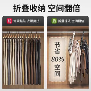 多功能折叠衣架不锈钢挂裤架折叠伸缩裤子家用无痕裤架魔术裤挂收