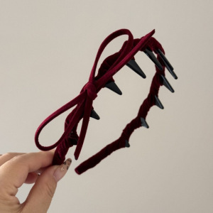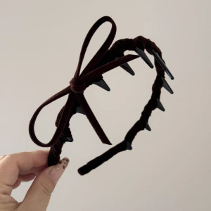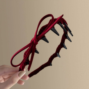 韩系植绒高颅顶复古波浪蝴蝶结发箍气质高级感防滑压发发卡头箍