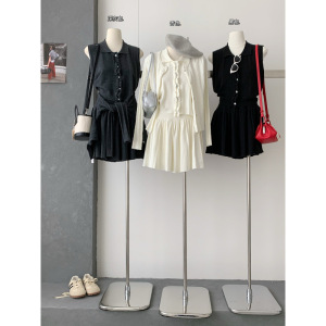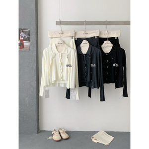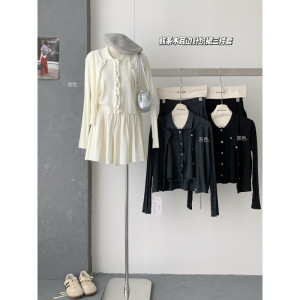 2025秋季学院风三件套 翻领针织背心+百搭开衫+A字百褶短裙子