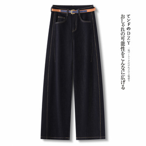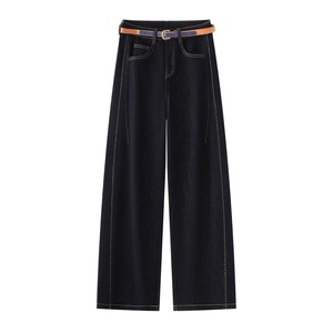 丹宁蓝弯刀裤阔腿牛仔裤秋季2025新款高腰显瘦今年流行爆款直筒裤