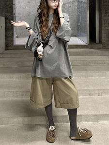 卡其七分裤