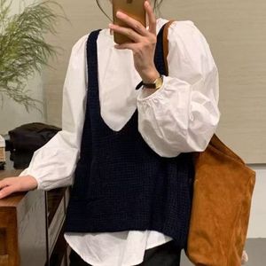 复古灰色叠穿针织吊带背心女夏季宽松慵懒风无袖马甲v领上衣外穿