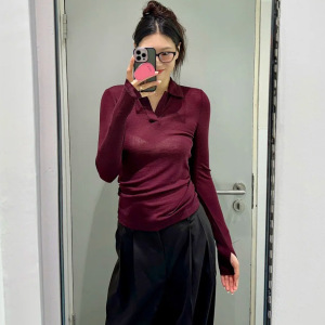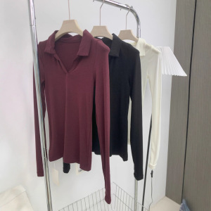 CS女装 羊毛长袖POLO衫女 2025年秋季新款打底衫上衣1290034001