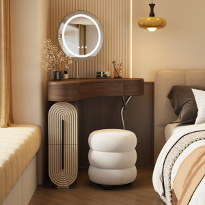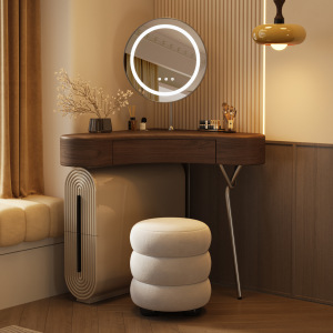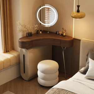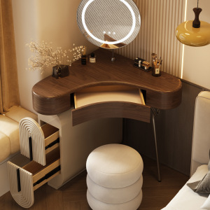 意式极简转角梳妆台收纳柜一体小户型实木设计卧室轻奢拐角化妆桌
