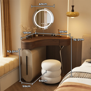 转角梳妆台+天鹅绒圆凳 (含镜子)