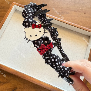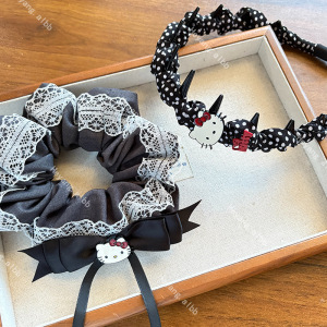 秋季新款时尚优雅气质灰黑猫咪发圈甜美少女心波点发箍发卡发饰