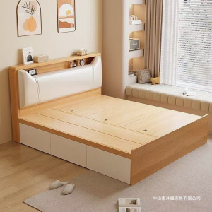 实木榻榻米床无床头双人储物床出租房用1米2家用地台小户型单人床